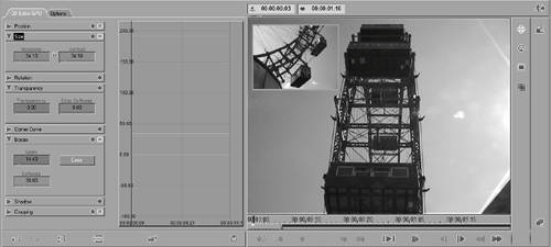 Creating a Picture in Picture effect You can also use the 2D or 3D Editor to create a PiPa Picture in Picture effectwhere one video clip sits inside a small window playing over top of another (Figure 9.54). Figure 9.54. An example Picture in Picture. I created this using three clips stacked on top of each other and two preset PiP filters.