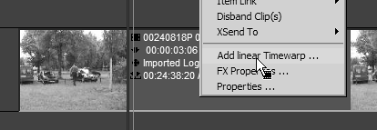 Figure 9.68. Adding a Linear Timewarp using the right-click menu.
