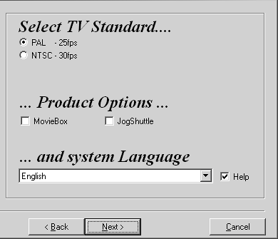 | 5. | The next screen asks you to choose which video standard and system language you want to use. This should default to the standard being used by Windows. Again, leave this set to the defaults and click Next (Figure 1.3).