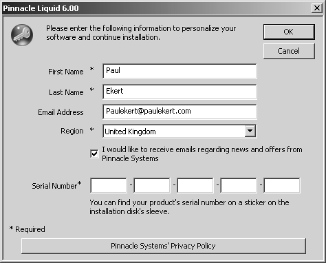 Figure 1.6. …and finally, enter your serial number and personal details, and wait for the installation to finish.