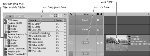 Figure 11.14. Dragging the ColorCorrection Editor to a clip.