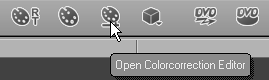 - With the clip selected, click once on the Open Colorcorrection Editor shortcut button