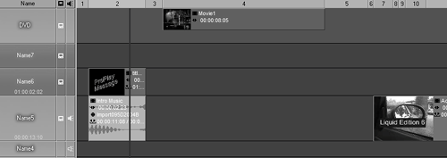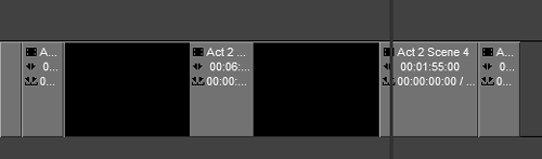 | Tips Make sure you place the first Sequence at about the 15-second mark of the Timeline. This gives you the room you need to insert the DVD menu. If you want to insert a preplay message, you need to leave more room. If you want a really long animated menu, you'll have to calculate for that too (Figure 12.3). Figure 12.3. When you're constructing a Timeline for DVD export, leave around 15 seconds at the beginning for the menu.