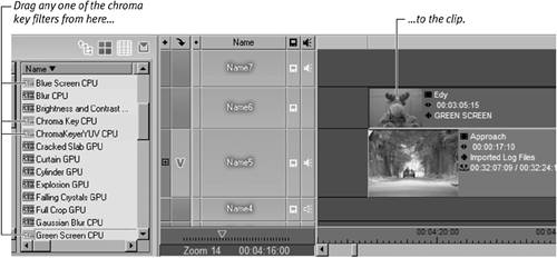 Tip Figure 14.35. Adding a chroma filter to the Timeline.