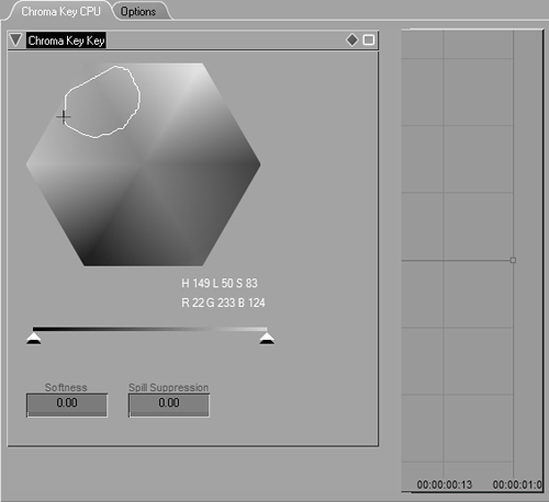 Adjusting the threshold produces the most noticeable difference when you're fine-tuning your chroma effect, but don't ignore the other settings as you adjust this clip (Figure 14.37).