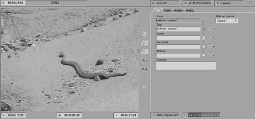| 4. | Now click the Digitize button , and the media clip for camera 1the "Master Camera" clipis digitized, at the same time creating a template for all the other tapes you have.