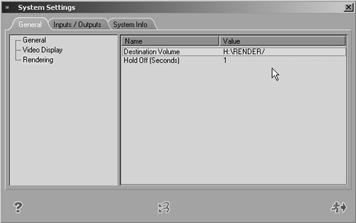 Figure 4.28. The System Settings interface on the General tab.  This displays the render location in the right window.