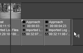 Figure 6.27. In Film Style, no gap is left because the neighboring clips follow the trim down the Timeline.