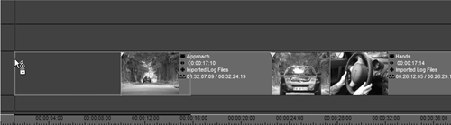 | Tips If you hold down Ctrl and use the keyboard arrows, you will be able to trim the clip one frame at a time (Figure 6.28). Figure 6.28. The Trim tool activated by holding down the Ctrl key and pressing an arrow key.