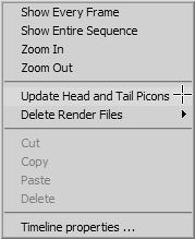 Once this has been set, you will need to manually update the Picons each time you trim a clip. To do this, simply right-click anywhere in the Timeline and select Update Head and Tail Picons from the pop-up menu (Figure 6.41). Figure 6.41. Automatic update of Timeline Picons is shown here as toggled on.