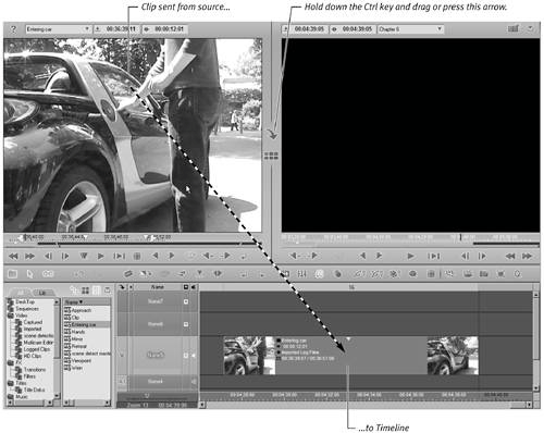 Figure 6.49. The media clip is sent from the Source Viewer or dragged with the mouse.