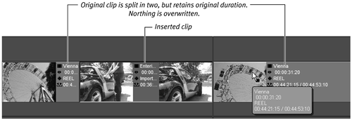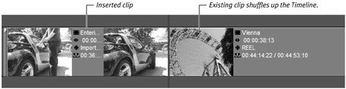 Clicking this button places the clip at your chosen position; the clip on the right moves up to make room for the new clip (Figure 6.50).