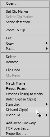 Figure 6.53. Selecting Disband Clip(s) if you don't want the original audio being overwritten by the inserted clip.