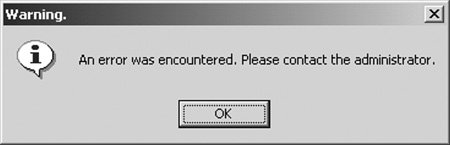 The second error message covers all other error messages and is produced by a routine (see Figure 20.12). The message provides an opportunity to deliver a customized error message to the user when an error is encountered. If you have a help desk phone number or email, you may want to include it in the message.