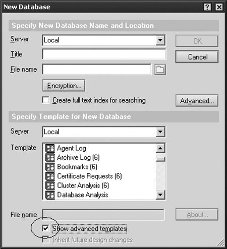 Database templates can be created both from scratch (just like creating a database) and by copying the design of an existing one and changing the file extension from .NSF to .NTF. Both approaches are described in the next two sections.