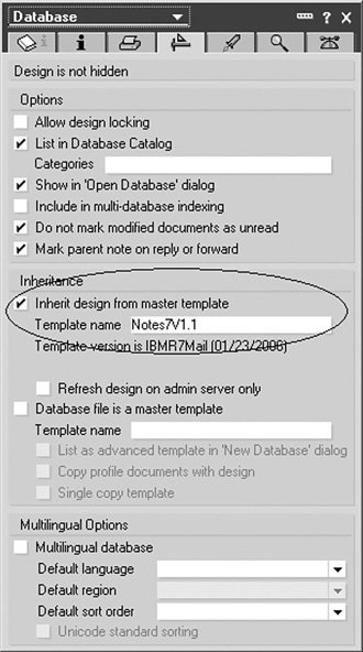 Virtually any database at any point in time can be established as a master design template. As with many configuration settings, the master template is defined through the database properties dialog window. This is accomplished by setting the Database is a master template property on the source database and the Inherit design from master template property on the target database.