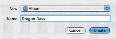 Figure 3.18. Next, choose Album from the New pop-up menu, name the album, and click Create.  | 2. | Choose Album from the New pop-up menu, enter a name, and click Create to add it to the Source pane.