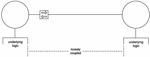 No one can predict how an IT environment will evolve. How automation solutions grow, integrate, or are replaced over time can never be accurately planned out because the requirements that drive these changes are almost always external to the IT environment. Being able to ultimately respond to unforeseen changes in an efficient manner is a key goal of applying service-orientation. Realizing this form of agility is directly supported by establishing a loosely coupled relationship between services (Figure 8.16).