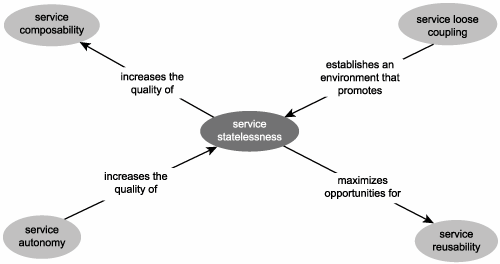 Figure 8.32. Service statelessness and its relationship with other service-orientation principles.