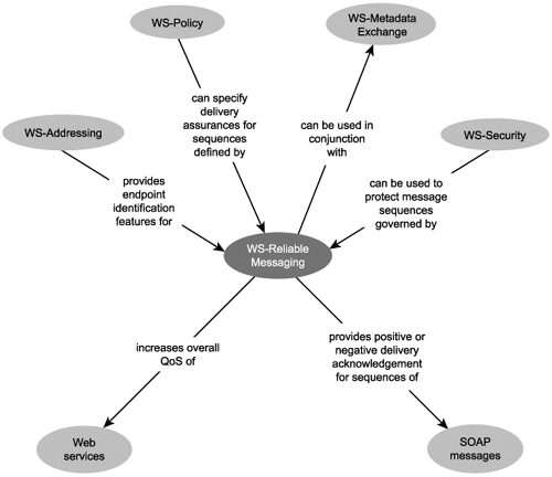 WS-ReliableMessaging introduces critical quality of service features for the guaranteed delivery or failure notification of SOAP messages. It also positions itself as a fundamental WS-* extension, as shown in Figure 17.2.