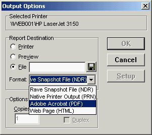 In addition to letting a user choose a file format in the dialog, rendering can be done programmatically. For example, to convert a report to a PDF file directly, you can write the following code (taken again from the RavePrint example):