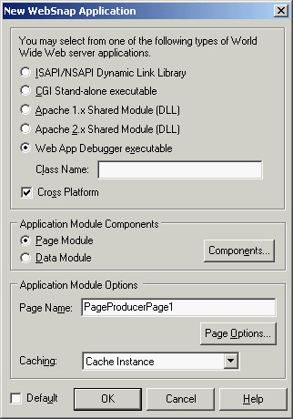 By using the corresponding option in the New Web Server Application dialog, you can easily create a new application compatible with the debugger. This option defines a standard project, which creates both a main form and a web module. The (useless) form includes code for providing initialization code and adding the application to the Windows Registry: