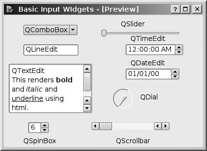 Input widgets, in "Plastique style," are shown in Figure 11.3.