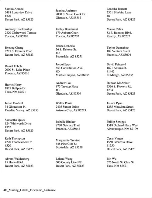 In Activities 4.21 through 4.23, you will create mailing labels for the Botanical Notes newsletter for the City of Desert Park. Your completed document will look similar to Figure 4.51.