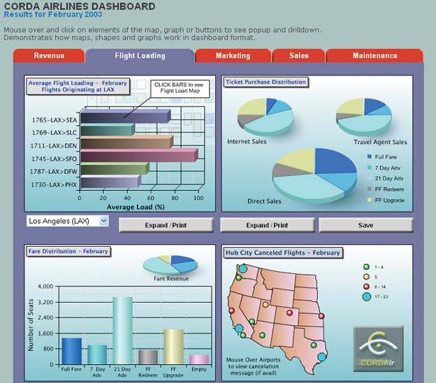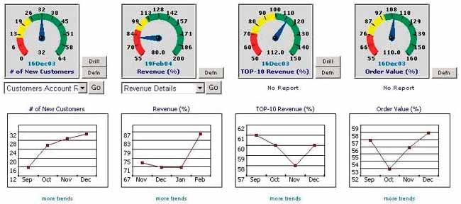 When you consider the entire collection of information that belongs on a dashboard, you should be able to prioritize it according to what is usually of greatest interest to viewers. For instance, a dashboard that serves the needs of a corporation's executives might display several categories of financial, sales, and personnel data. On the whole, however, the executives usually care about some key measures more than others.