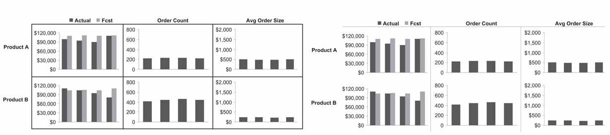 Figure 5-11. Grid lines in graphs are rarely useful. They are one of the most prevalent forms of distracting non-data pixels found in dashboards.