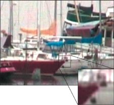 Features to Ignore/Avoid Just as there are features you should pay attention to, some features should be ignored or outright avoided. Most of these are included for buyers who don't have the means to edit their movies after shooting. But iMovie does all of the following better than a camera. Most importantly, these effects permanently alter your footage, which you can't correct later in iMovie. Digital zoom. One of the first features you'll see on a camera is that it has a 200X (or higher) digital zoom. The technical interpretation is that the computer inside the camera digitally enlarges the image it's seeing, and it appears as if the camera is zoomed beyond its optical capabilities (Figure 1.14). The real-world interpretation, at least for now, is that some marketer somewhere is smiling and thinking about the wisdom of P.T. Barnum. Digital zoom isn't pure hokum, but it's also not a mature enough technology to be used in your movies. I expect that as cameras become more powerful and the image processing chips and software speed up (as they inevitably will), digital zoom will become a powerful tool. But not yet. Figure 1.14. Digital zoom creates lots of pixelation as the camera tries to interpolate the image.  Special effects. Before iMovie, you couldn't apply "sophisticated" techniques such as fade-in or fade-out without using an expensive professional editing system. So, camcorder makers added the capability to apply fades, wipes, and image distortions such as sepia tones or solarization (Figure 1.15). Well, forget special effects entirelyyou can do them better in iMovie, with more control, and without degrading your footage. Figure 1.15. In-camera special effects are really only good for ruining otherwise good footage. And not to sound mean, but the Mosaic (top) and Wave (bottom) effects shown here aren't even that interesting. Let iMovie handle your effects (see Chapter 13).  Date stamp. You can optionally display the date and time on your footage, which would appear to be helpful if not for the fact that the information remains on the tape. Even with this feature disabled, your camcorder is recording (but not displaying) this data, which shows up in iMovie when you view information about a clip (Figure 1.16). Similarly, avoid built-in options for adding titles. Figure 1.16. iMovie notes the date and time a clip was shot, so you don't need to use a date stamp feature that permanently adds it to the footage.  Still photo. Most cameras now include the capability to take still photos. This is a good idea in theory, but the execution varies widely. Some cameras can capture progressive-scan imageswhich means every pixel is grabbedand then save them to a separate memory card (such as SD or Sony Memory Stick cards). These result in better images, depending on the camera, but still not as good as what you'd get from most digital still cameras. A few models now include separate CCDs (and even separate lenses) to take higher quality images. The technology is always improving, so it's possible that soon you may be able to buy a still photo and video camera combination that works well for both tasks. But personally, I'm more comfortable carrying two cameras that each excels at its appointed tasks. |