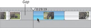 Figure 8.39. Dragging a clip to the right in the Timeline Viewer creates a gap.  | To change a gap's duration: - When creating the gap, continue dragging the adjacent clip until the gap spans the duration you want.