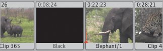 Figure 8.40. The same gap appears as a clip containing black frames in the Clip Viewer.  | 2. | Double-click the clip that appears in place of the gap to bring up the Clip Info dialog (Figure 8.41).