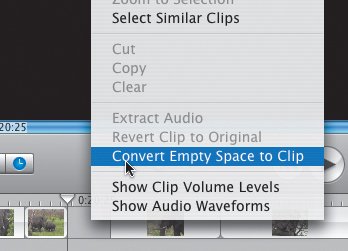 | 3. | From the contextual menu (Control-click), choose Convert Empty Space to Clip (Figure 8.42).