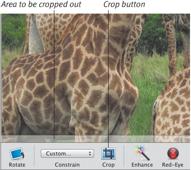 Figure 9.8. After setting the constrain values in iPhoto, position the visible area and then crop the image.  | 4. | Click the Crop button.