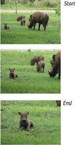 Figure 9.10. Click the Start button and set up the opening frame of the effect. Here, we're starting off with a shot of a warthog family. | 6. | Click the image in the preview window and drag it to define the portion of the picture that initially appears. (If you're not zoomed-in at all, you probably don't need to do this.)