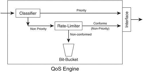 In the current implementation of Cisco ASA, two classes of traffic prioritization are supported: priority QoS and nonpriority QoS. Priority QoS means that packets are prioritized over regular traffic, whereas nonpriority QoS means that packets are processed by the rate limiter, as discussed earlier.