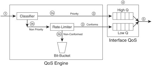 When a packet passes through a security appliance configured for QoS, the following sequence of events occurs, as illustrated in Figure 12-2: