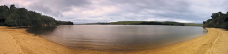 | Photoshop's feature called Photomerge allows you to easily create panoramas by stitching together a series of images into an (almost) seamless whole. A successful panorama requires a bit of planning. For best results use a tripod, preferably with a level, and shoot each frame verticallyneither of which I did in the following example. If that's not possible, you can still create panoramas, but you (and Photoshop) are going to have to work harder to get a good result. When shooting the individual frames make sure you have a generous overlap25 to 30% works well. Figure 4.39. The original pieces from which the panorama is assembled (examples A through E).  Figure 4.40. The completed panorama, sharpened and color corrected.  | | 1. | In this exercise, you'll use your own images. From within Adobe Bridge, select the thumbnails of the images you want to make up your panorama and choose Tools > Photoshop > Photomerge. (You can also use Photomerge directly from within PhotoshopFile > Automate > Photomergebut you have to either open all the images first or navigate to the images from within the Photomerge dialog.)
