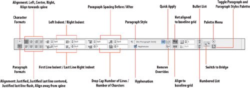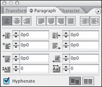 Figures 1.7A and 1.7B. The Control palette in Paragraph Formats view and the same options offered by the Paragraph palette.