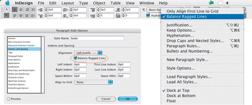 Figure 8.15. Balance Ragged Lines applied locally from the Control palette and incorporated into a Paragraph Style definition.