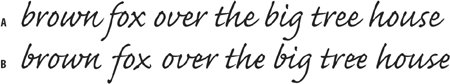Figure 7.14. Without Contextual Alternates (example A), and with Contextual Alternates (example B) note the connecting ligatures.
