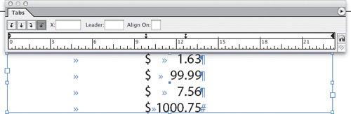 Figure 12.3. Align On. This example uses two decimal tabs, the first set to align on the $ symbol.
