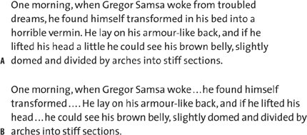 Figure 6.10. Without ellipsis (example A); and an omission within a sentence and at the end of a sentence (example B).