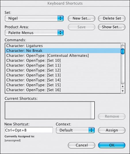Figure 11.3. Assigning a shortcut to No Break.