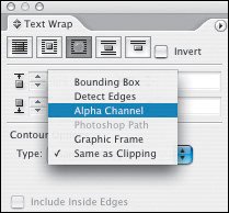 When working with an irregularly shaped object, select the object and choose Wrap Around Object Shape from the Text Wrap palette. The best way to prepare your image is as a Photoshop file (psd) with an Alpha channel or Layer Mask. In-Design supports Photoshop transparency, so you no longer need to worry about drawing pen paths around your image for a hard-edge vector-clipping path. From Contour Options, choose Alpha Channel. The text will use the image's transparency to define a wrap boundary. You can adjust the Top Offset field (you'll only have the one) to determine how close the text comes to the 100 percent opaque pixels in the image.