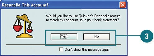 Did You Know? You can reconcile when you want to update your balance or to skip clearing the transactions individually in your register. You can reconcile an account when there is a discrepancy between your statement balance and your Quicken register balance. Reconciling the balance gives you the opportunity to synch the two balances. When you reconcile your balance, the next time you balance your account, Quicken works from the reconcile balance. You can also check off your cleared transactions using the Statement Summary window by selecting Yes in step 3. |