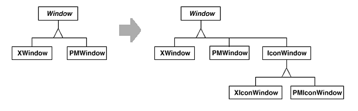 Consider the implementation of a portable Window abstraction in a user interface toolkit. This abstraction should enable us to write applications that work on both the X Window System and IBM's Presentation Manager (PM), for example. Using inheritance, we could define an abstract class Window and subclasses XWindow and PMWindow that implement the Window interface for the different platforms. But this approach has two drawbacks:
