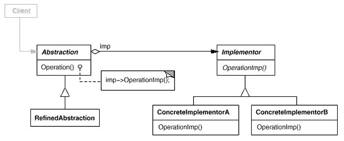 Furthermore, this decoupling encourages layering that can lead to a better-structured system. The high-level part of a system only has to know about Abstraction and Implementor.