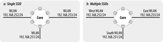 Some organizations are simply too large to build a single access point network. The classic example is a major research university with multiple buildings distributed over several square miles. Configuring a single access point network to snake through the entire campus is simply out of the question, not least because large campuses depend on routed networks for broadcast isolation.